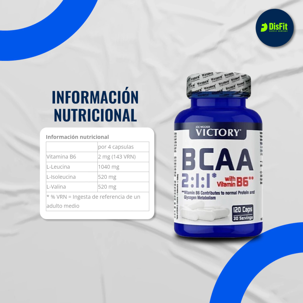 Numerosos estudios han demostrado un mayor efecto anabólico y una mayor efectividad de los BCAAs en proporción 2:1:1 (leucina:isoleucina:valina), por lo que Victory ha formulado este producto combinando estos tres aminoácidos siguiendo