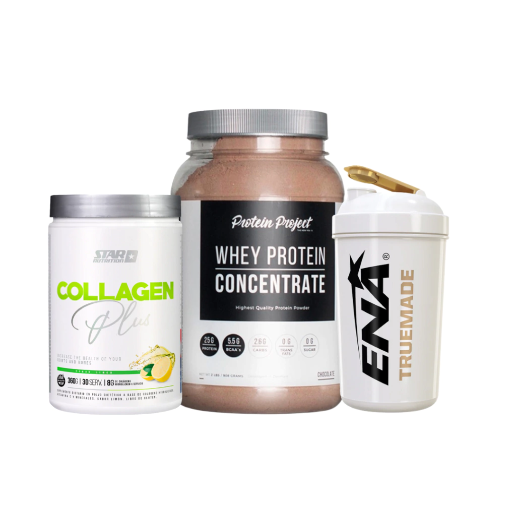🥇 Combo Fit Beauty | Protein Project Whey + Collagen Plus Star Nutrition + Shaker ENA