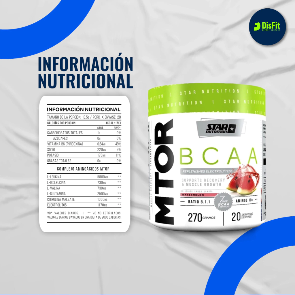 MTOR BCAA es un suplemento en polvo de Star Nutrition a base de aminoacidos ramificados (BCAA), glutamina y electrolitos. Gracias a su excelente formulacion permite que tengas sesiones de entrenamiento mas intensas y mas prolongadas con menor fatiga
