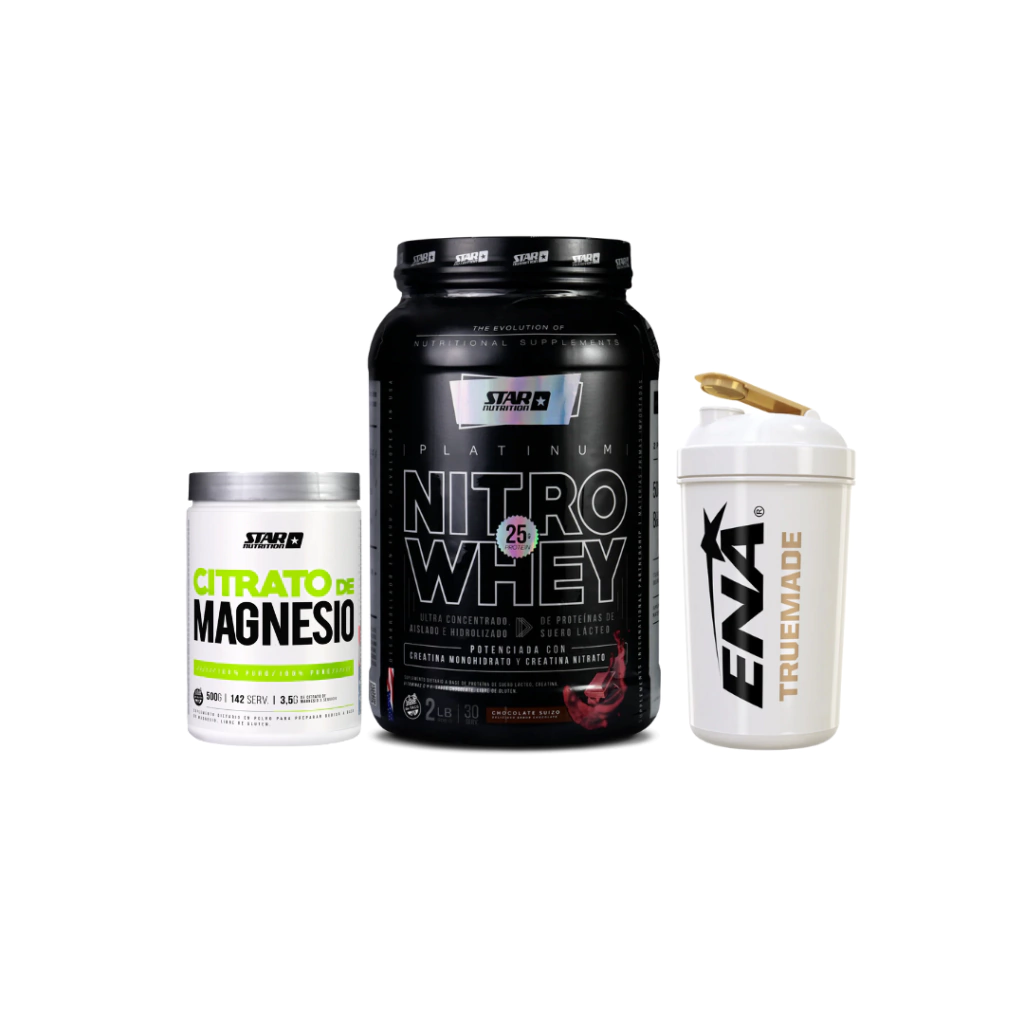 🥇 Star Nutrition Combo Recuperación | Nitro Whey + Citrato de Magnesio + Shaker Libre de BPA